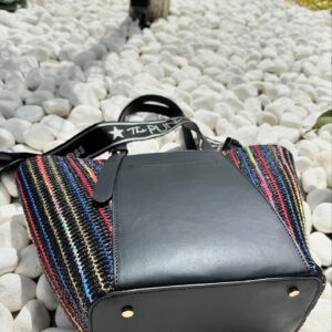 MINI JANE BAG – RAPHIA NOIRE RAYÉE X CUIR NOIR